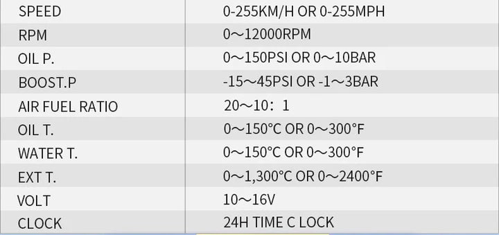 SINCO TECH DO909 Racing dashboard features a waterproof , 7-inch , TFT true full color , 800*480 resolution, ABS shell ,touching screen . It’s REVs can be reach to 12000 max and it is universal for all 12V vehicles .Ten LED speed indicator lights span on the top row of display shell and three additional alarm indicator LED lights are designed on either side and are fully programmable . Total nine pages was designed interface include 5 system modes and the instrument cluster has a data recording function which can record various data to the TF card.