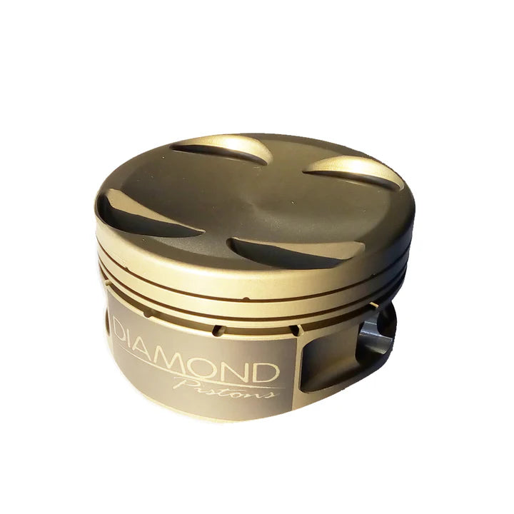 Diamond Piston Kits are custom dished with .905" x 2.500" x .205" wrist pins, new double pin oilers and complete ring sets (chrome steel top, cast compression and three-piece oil). The piston skirts are moly coated (for scuff resistance) and the tops are ceramic coated (thermal barrier)
