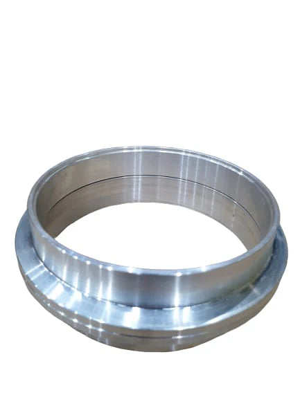 Aluminum V-band assemblies with O-rings are the strongest and most leak proof way to connect your intake components. If you're running more than 75 PSI, or if you don't mind putting in some extra work to get an especially nice looking and leak proof intake, this system is just right. These aluminum V-band clamp rings (also known as pipe ends) are designed for welding to your aluminum pipes and clamping together with one of our V-band clamps. The end result is an intake that will handle massive pressure, be impossible to put together wrong, never leak, and be very lightweight compared to just about anything else you could use. Another advantage of our aluminum V-band clamp rings is that they can be welded to our aluminum intercoolers. These V-band clamp rings come with a gasket as shown in the picture. The gasket helps to reduce leaks even farther in any temperature conditions, but the v-band rings can also be installed without the gasket. Using our V-band rings and clamps, you can install stainless steel components right next to aluminum components. For example, you can install a stainless steel flex section with SS v-band rings into an aluminum pipe with aluminum v-band rings. This way you can get the affordability and light weight of aluminum pipes with the material characteristics of stainless steel where needed. These are numbered based on the inner diameter of the pipe. You should order our V-band clamp to go with these. Two rings and the O-ring are included, but the V-band clamp itself is sold separately