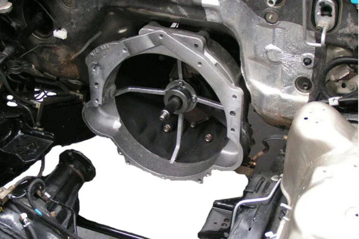 The kit consists of an adaptor housing which couples the Chevy petrol engines to the original Nissan petrol or diesel bell housing. The new adaptor housing measures 72 mm in length and spaces the Chevy engine away from the irregular shape of the Nissan Patrol firewall. No firewall modifications or re positioning of the original transmission is required.